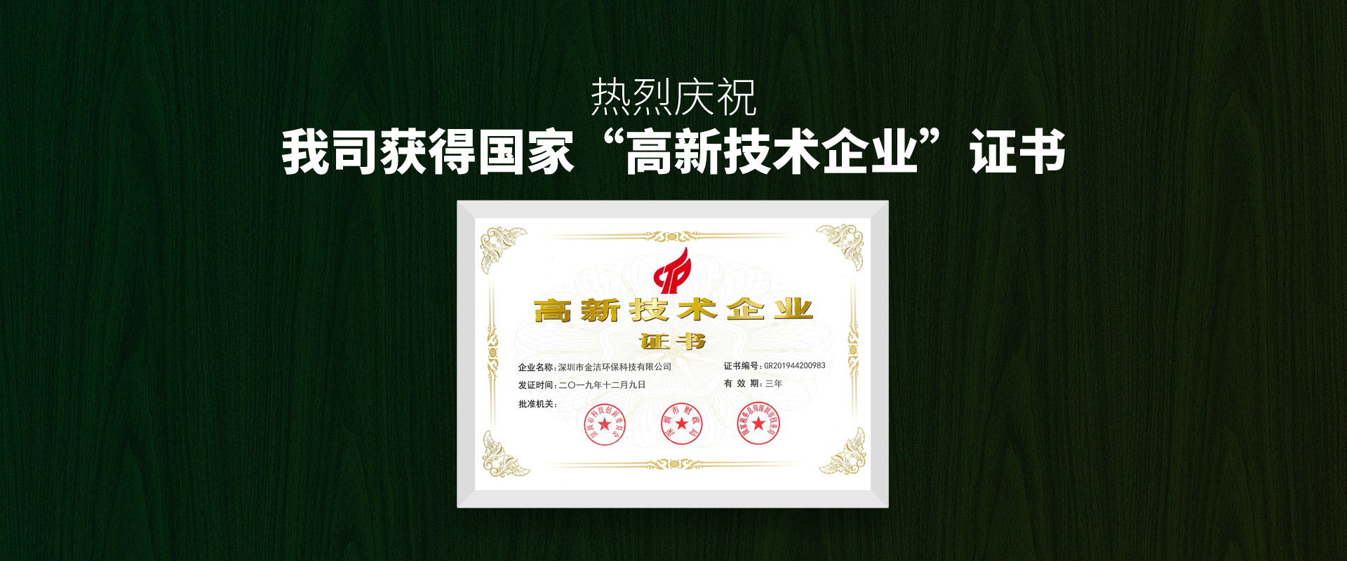 深圳市環境保護產業協會證書